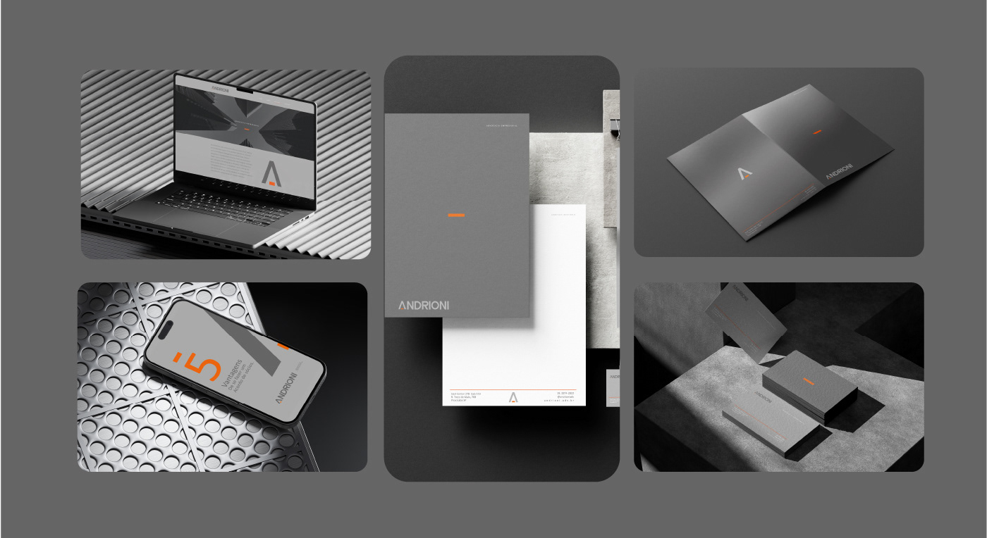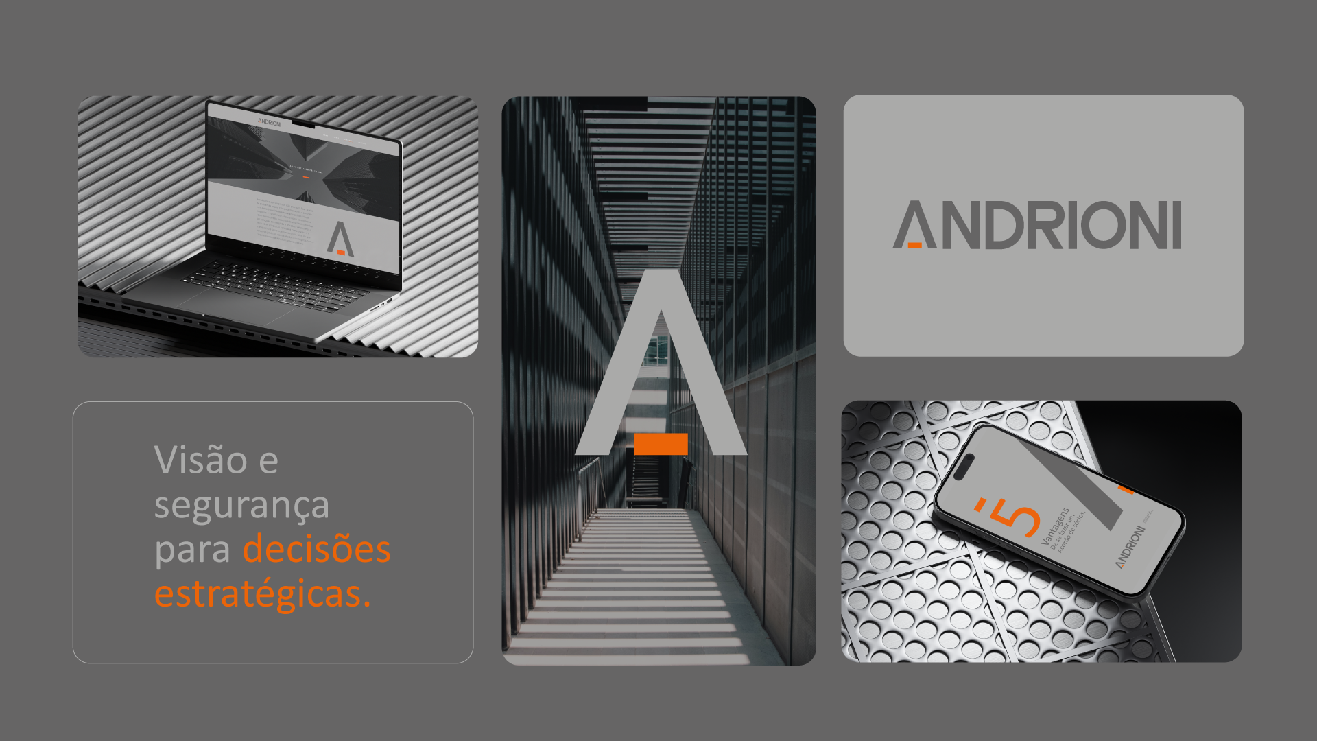 Redesign da marca e identidade visual para o escritório de advocacia Vinicius Andrioni, agora Andrioni Advocacia Empresarial. O novo logotipo é tipográfico, com uma letra sans serif moderna que transmite confiança e estabilidade. Seu design limpo reforça o profissionalismo e a clareza da marca, enquanto o detalhe em laranja no pé do “A” adiciona dinamismo e antecipação estratégica, contrastando com os tons de cinza que transmitem solidez e sofisticação. Uma identidade visual que une modernidade e autoridade, posicionando a Andrioni como referência no mundo empresarial.